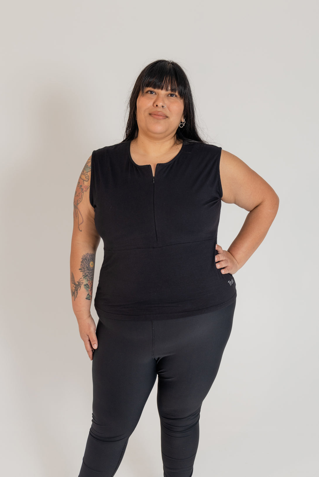 Zip Sleeveless Top Black